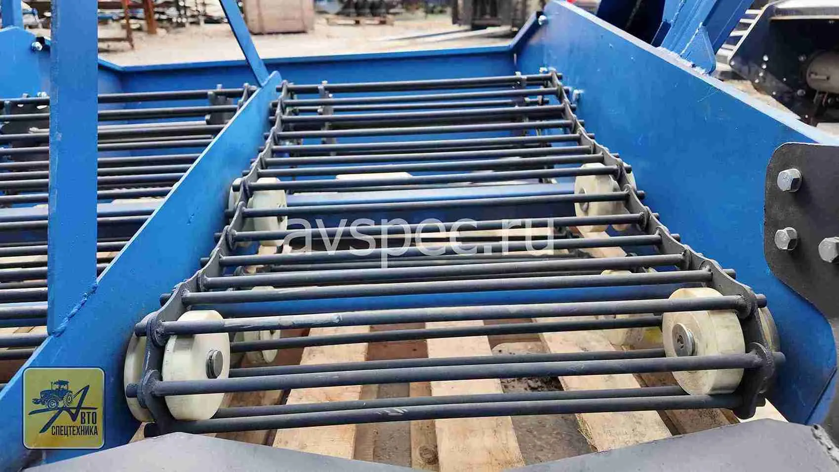 Транспортер - металлический, закрытый редуктор запускает систему потряхивания, на выходе корнеплоды очищены от грязи и земли.