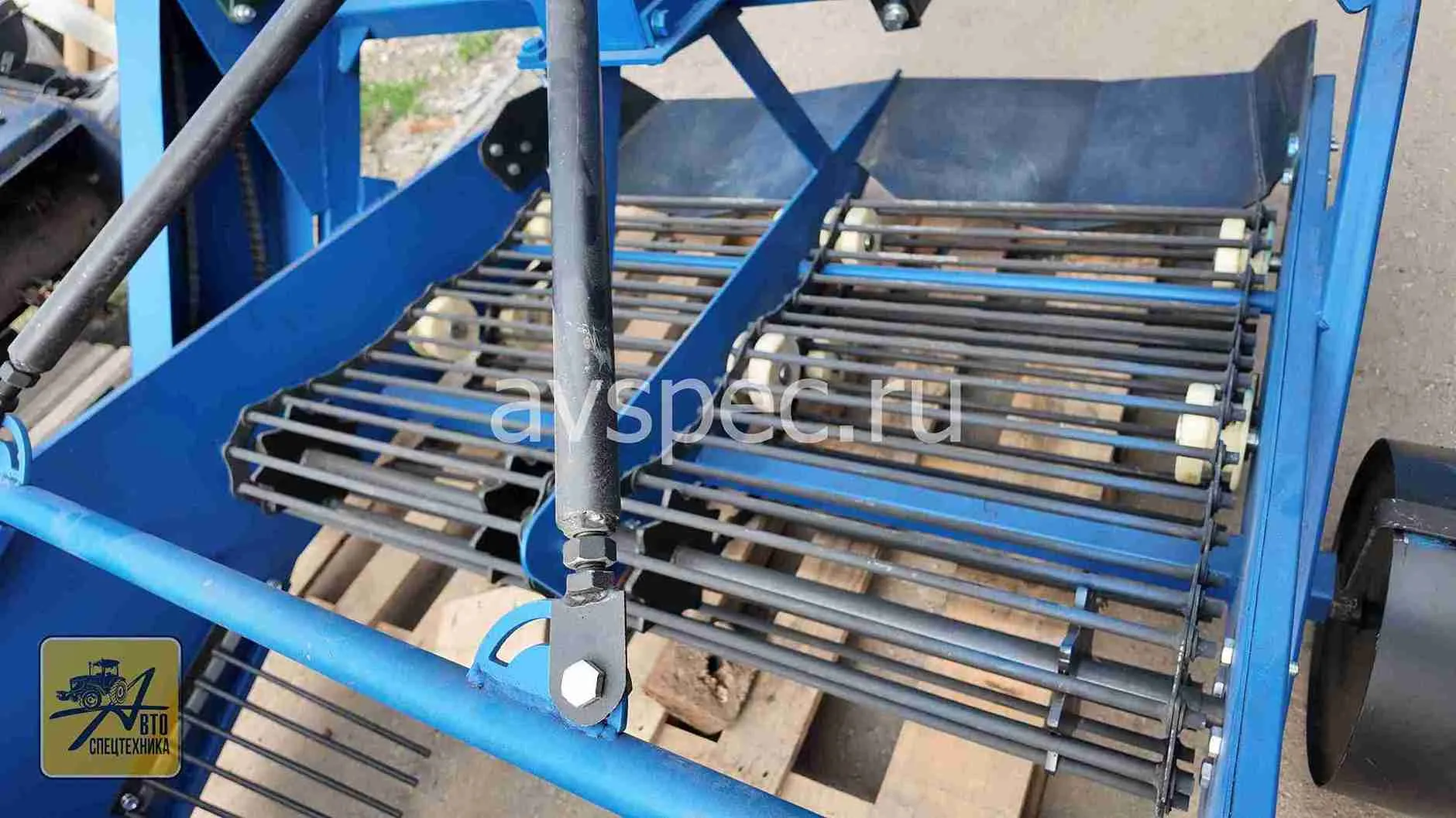 Техника для трактора, оснащенным валом отбора мощности, это дает возможность использовать картофелекопалку при разных размерах междурядий.