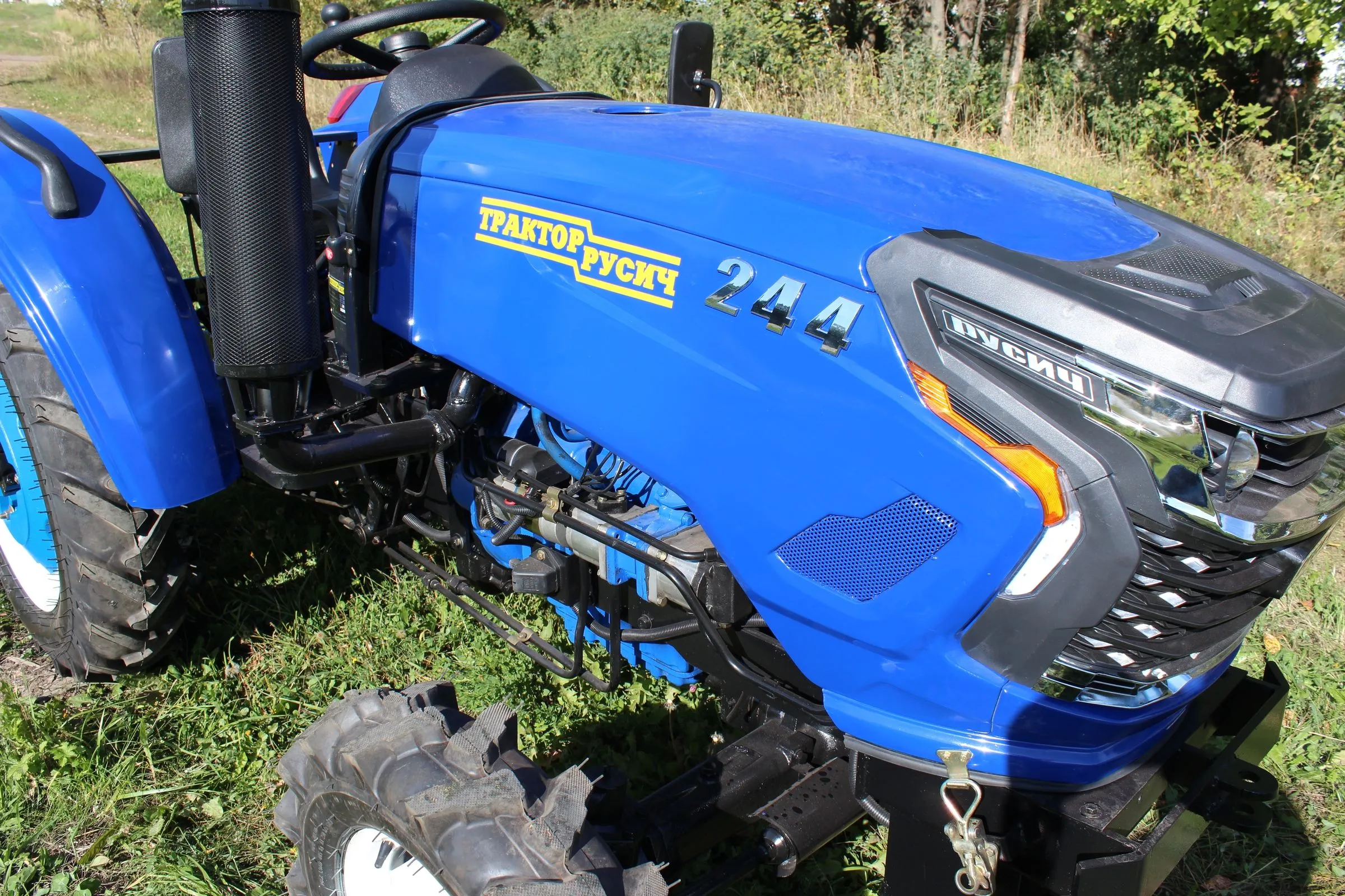 Благодаря надежному 28-сильному двигателю и полному приводу, минитрактор без усилий перевозит свыше 3 тонн грузов. Рассчитан на обработку больших площадей, подходит для абсолютно любых типов почв. Техника оснащается различным навесным оборудованием и является идеальным вариантом для обработки участков площадью не более 15 гектар. Для комфортного и эффективного вождения рулевой механизм трактора Русич Т-244 TE оснащён гидроусилителем рулевого управления — ГУР. За счет этих плюсов трактор обеспечивает надежность и долговечность, максимальную функциональность, а также повышенный комфорт при эксплуатации.