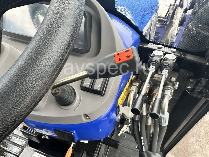 Кабина трактора оснащена кондиционером, системой отопления. Для удобства управления на минитраке установлен гидроусилитель руля, регулируемая колея и полный привод. Сидение комфортное, с ремнем безопасности надежно защищает водителя. Гидравлическое масло подается раздельно.