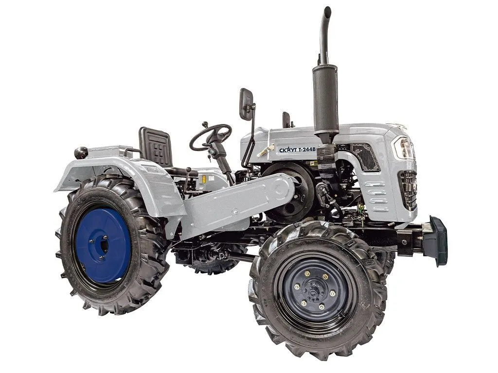 Модель – новинка 2021 года, которая относится к классу полупрофессиональной полноприводной тракторной техники повышенной проходимости. Мини-трактор СКАУТ Т-244В оснащен четырехтактным дизельным двигателем SF138-2 мощностью 24 л. с., а также надежной, простой по конструкции и удобной в ремонте ременной передачей. Трактор имеет трехточечную систему навески, односкоростной вал отбора мощности 540 об/мин, и готов к работе со всеми существующими видами навесного оборудования массой до 480 кг.